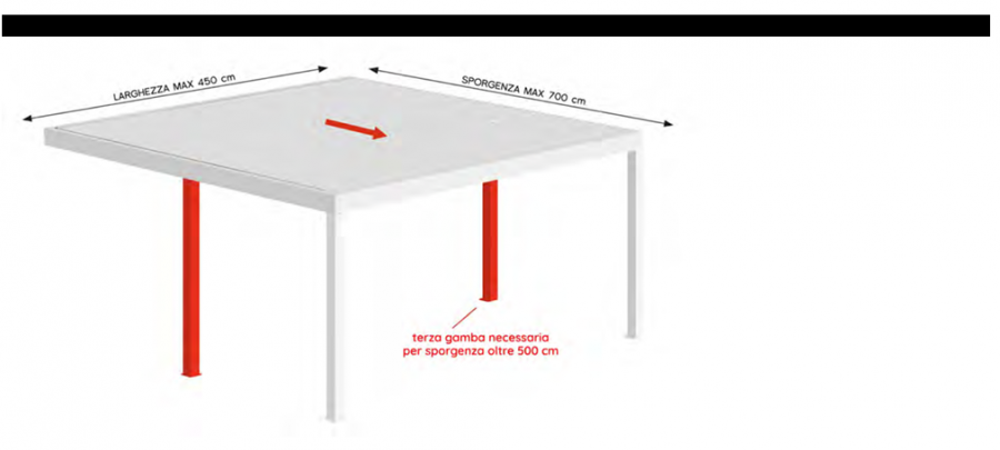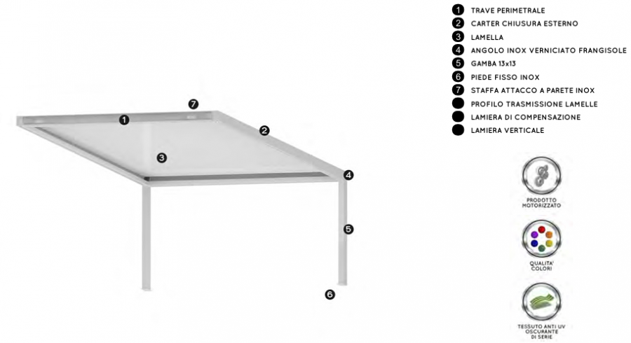 La movimentazione della tettoia è tramite motore meccanico con azionamento radio tramite telecomando monocanale e centralina