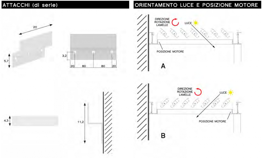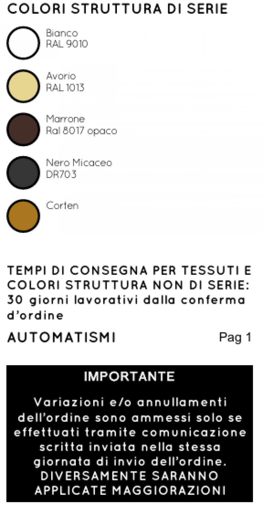 Per la versione via radio vedere sezione optional per centralina La rotazione delle lame da 0° a 90° permette una efficace ventilazione e un piacevole riparo dai raggi solari
