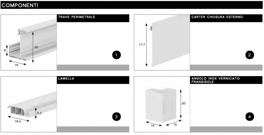 Il sistema di copertura a lamelle orientabili è estremamente semplice da installare e versatile nelle diverse applicazioni