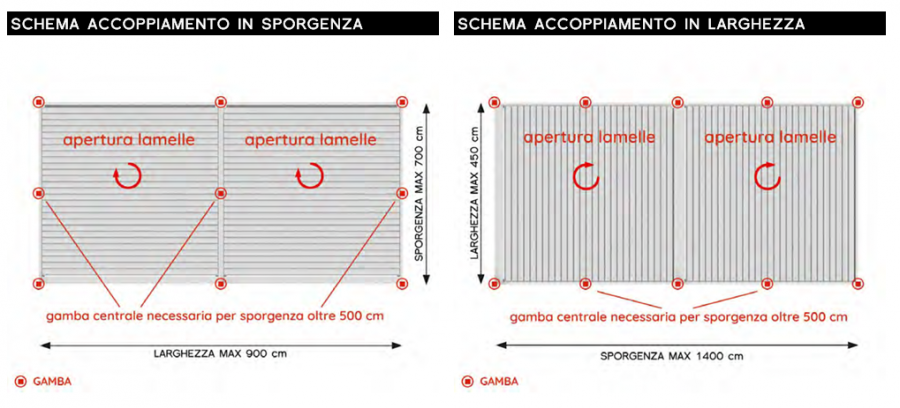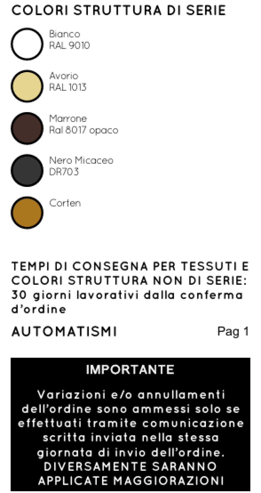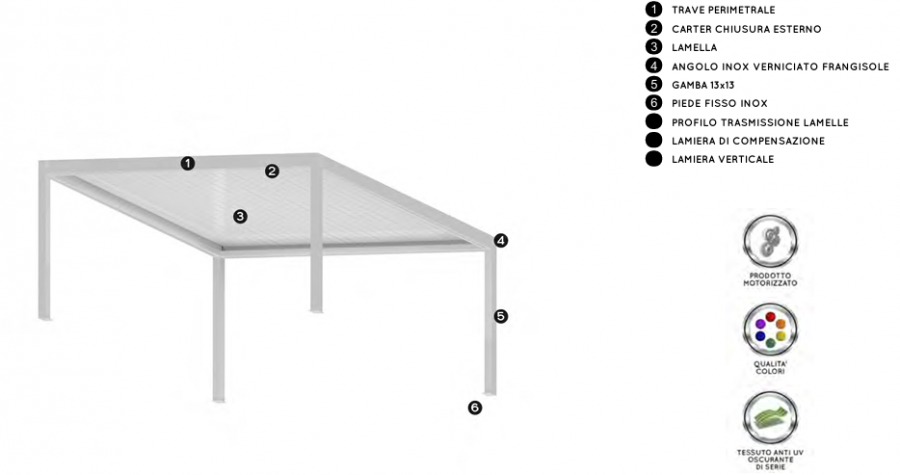 La movimentazione della tettoia è tramite motore meccanico con azionamento radio tramite telecomando monocanale e centralina