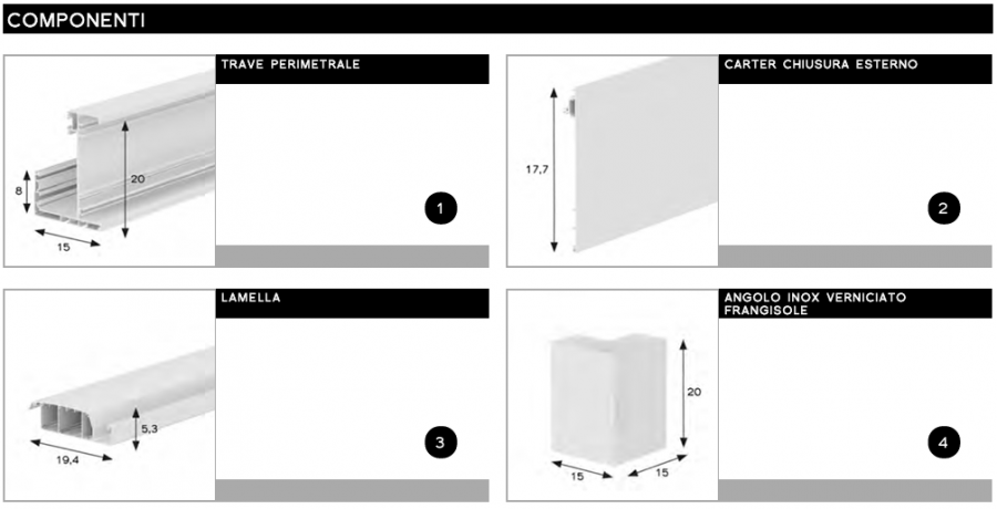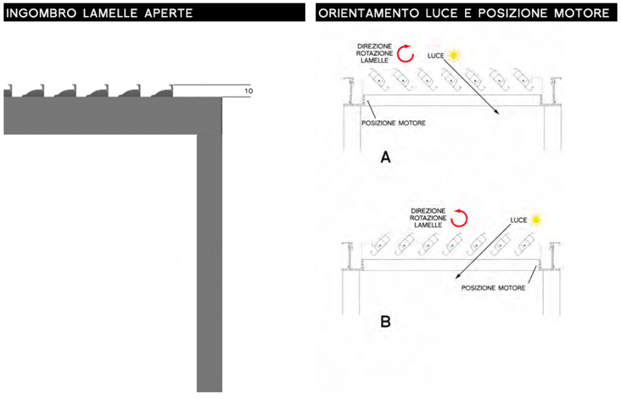 Il sistema di copertura a lamelle orientabili è estremamente semplice da installare e versatile nelle diverse applicazioni