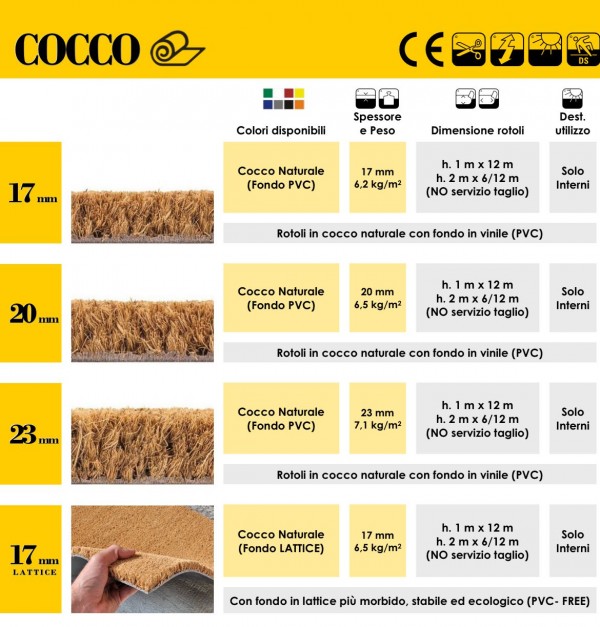 Tra i nostri zerbini più venduti, riteniamo particolarmente interessanti i modelli in cocco colorato per chi ricerca un tappeto ingresso distintivo. Questo prodotto, oltre ad essere realizzato nella pratica e sicura fibra di cocco, viene proposto in diverse colorazioni vivaci per dare un tocco di allegria e dinamismo alla tua porta d'ingresso.